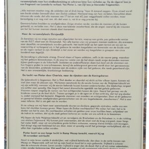 Het verslag van haar oudoom beschrijft aangrijpend hoe de mannen door regen en modder marcheerden, ondergebracht werden in een kolenschip, en onderweg hulp kregen van inwoners van Wezep die appels en boterhammen uitdeelden – ondanks het gevaar. In het kamp zelf heerste kou en honger, maar ook kameraadschap. Na vijf dagen wist Pieter met vier anderen te ontsnappen; ze vonden onderdak bij boeren, een dominee en een boswachter, en bereikten uiteindelijk lopend Rotterdam.