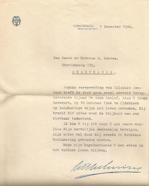 Roelof Schraa werd geboren op 20 november 1920 in Zwartsluis.
